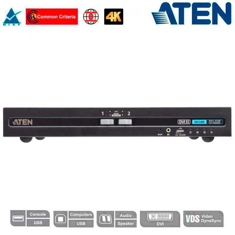 El switch KVM de seguridad avanzada PSD PP v4.0 CS1182D4C de ATEN está diseñado específicamente para cumplir los estrictos requisitos de seguridad de las instalaciones de defensa e inteligencia. Cumple con el estándar PSD PP v4.0 (Protection Profile for Peripheral Sharing Device, versión 4.0) y cuenta con la certificación de la National Information Assurance Partnership (NIAP).