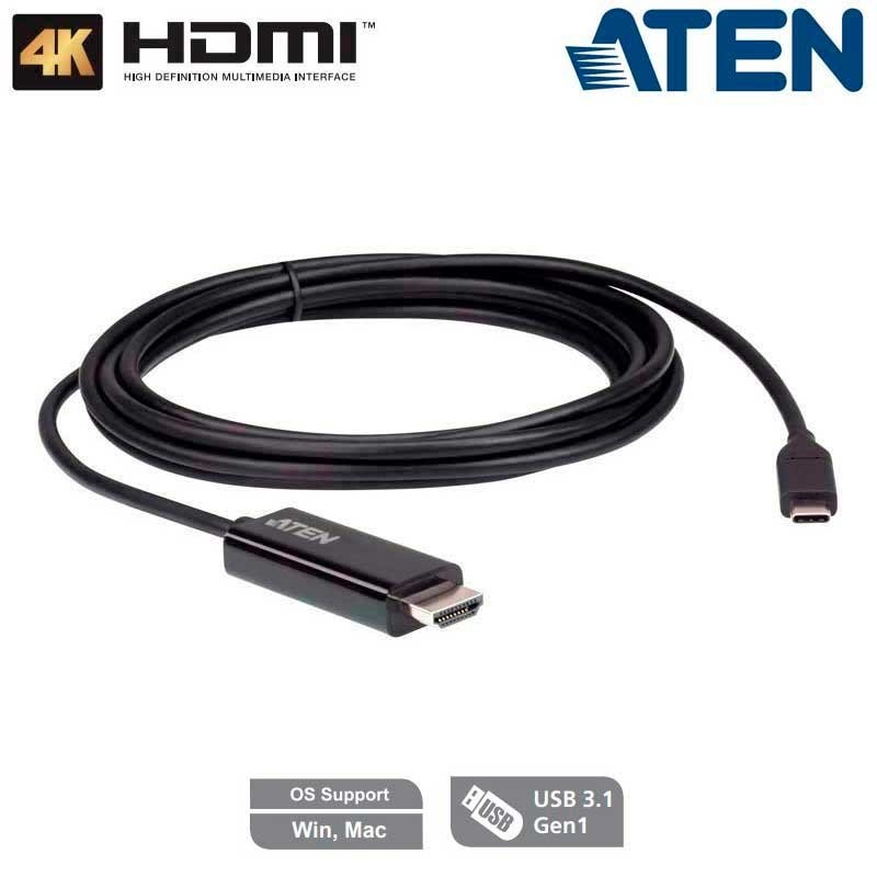 El cable conversor UC3238 de Aten es una perfecta solución para conectar un portátil con USB-C a una pantalla HDMI, que le permitirá tener ordenados tanto los cables como su instalación, sin necesidad de dispositivos adicionales o cables alargadores de HDMI.