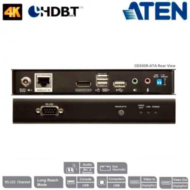 El extensor de KVM USB DisplayPort HDBaseT™ 2.0 ATEN CE920ATA integra las tecnologías HDBaseT™ 2.0 más modernas para ofrecer señales de vídeo 4K, audio estéreo, USB y RS-232 a una distancia de hasta 100 metros a través de un solo cable Cat 6/2L-2910 Cat 6. HDBaseT™ 2.0 garantiza la máxima fiabilidad de transmisión del mercado y hace posible la capacidad de largo alcance que lleva las señales Full HD 1080P a distancias de hasta 150 metros. Con una sencilla instalación con un solo cable que admite varias señales, el CE920ATA resulta ideal para aplicaciones en las que se necesita práctico acceso remoto, como centros de control de transporte, instalaciones médicas, almacenes industriales y estaciones de trabajo ampliadas.