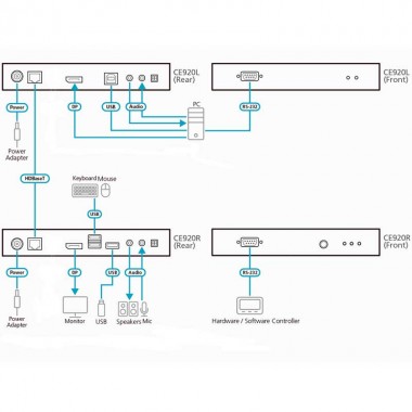 - 1 x CE920R-ATA extensor de KVM USB DisplayPort HDBaseT 2.0 (unidad remota)