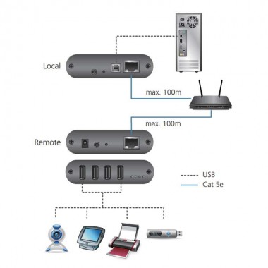• 1 x Extensor USB 2.0 a través de LAN Cat 5 de 4 puertos UEH4102L (unidad local)