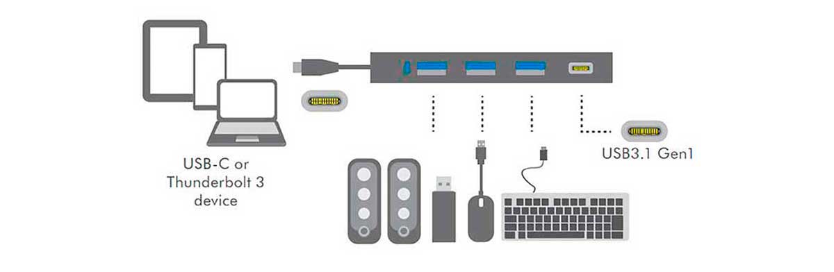 - Admite el estándar USB 3.1 Gen 1 (compatible con Thunderbolt 3) y la velocidad de transferencia de datos de alta velocidad de hasta 5 Gbps